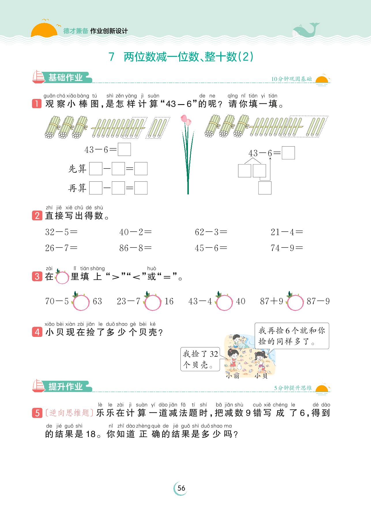 2023下册一年级数学人教版 第六单元 100以内的加法和减法(一)——7 两位数减一位数、整十数(2)