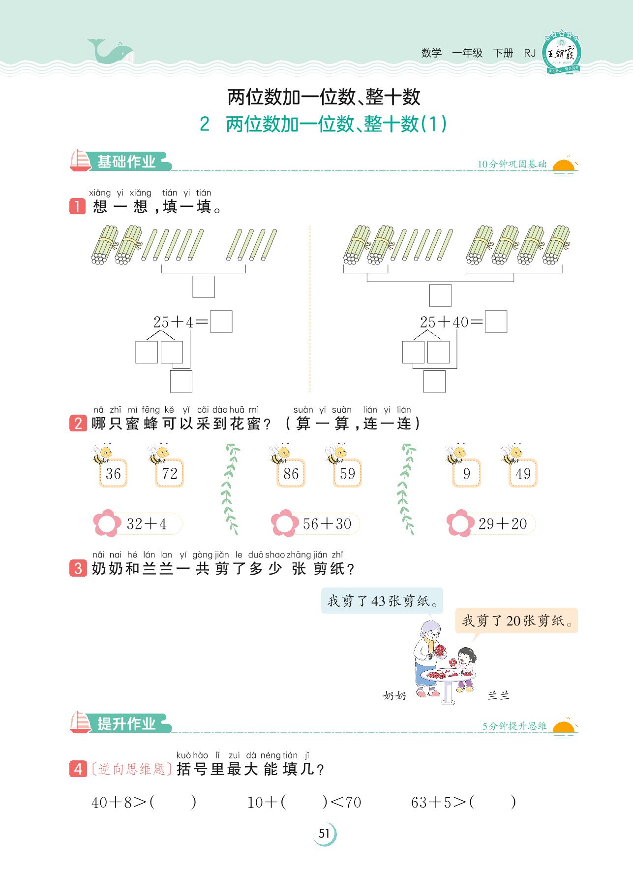 2023下册一年级数学人教版 第六单元 100以内的加法和减法(一)——2 两位数加一位数、整十数(1)