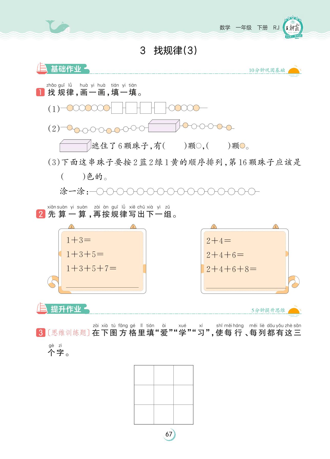 2023下册一年级数学人教版 第七单元 找规律——3 找规律(3)