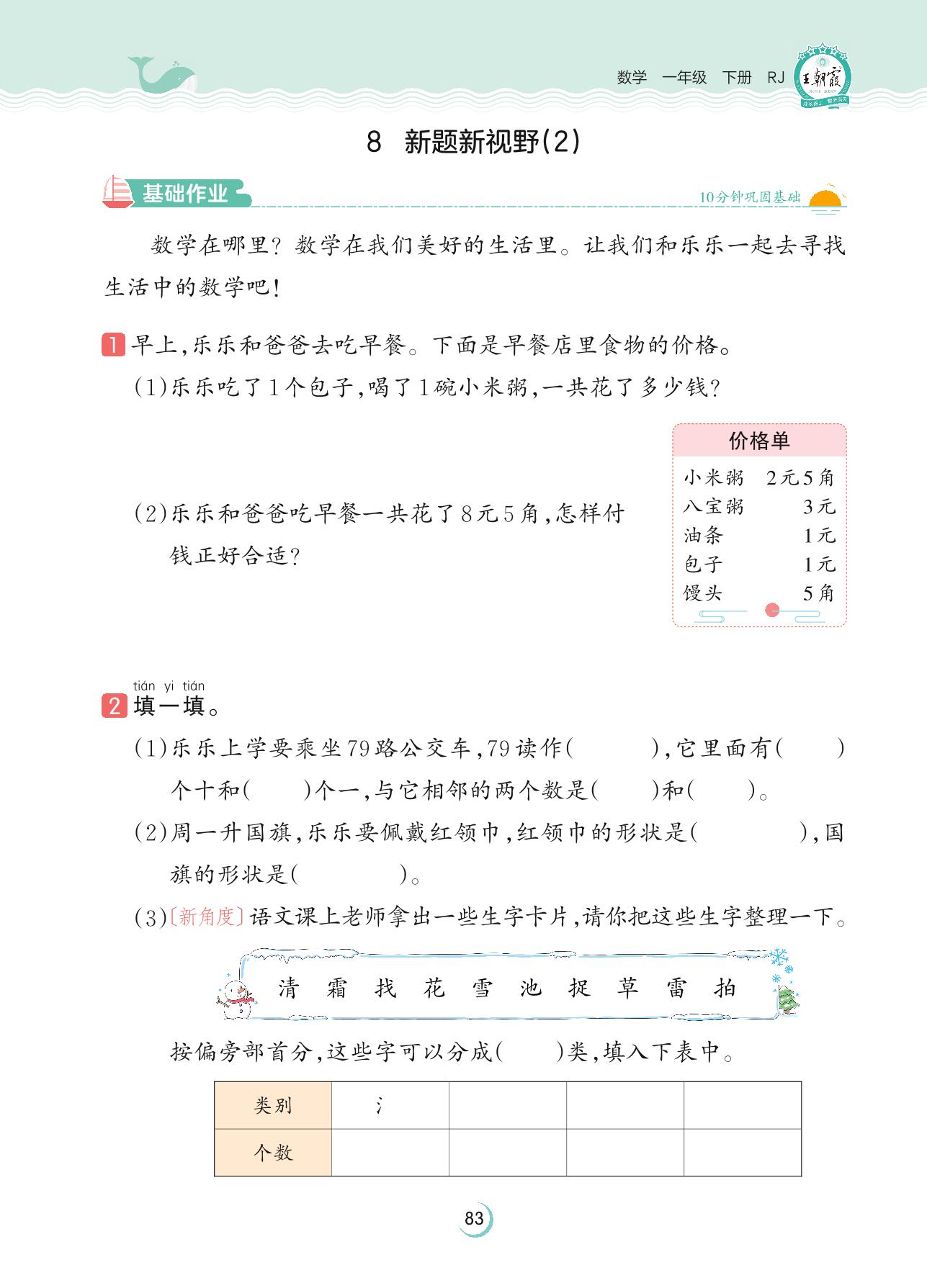 2023下册一年级数学人教版 第八单元 总复习——8 新题新视野(2)