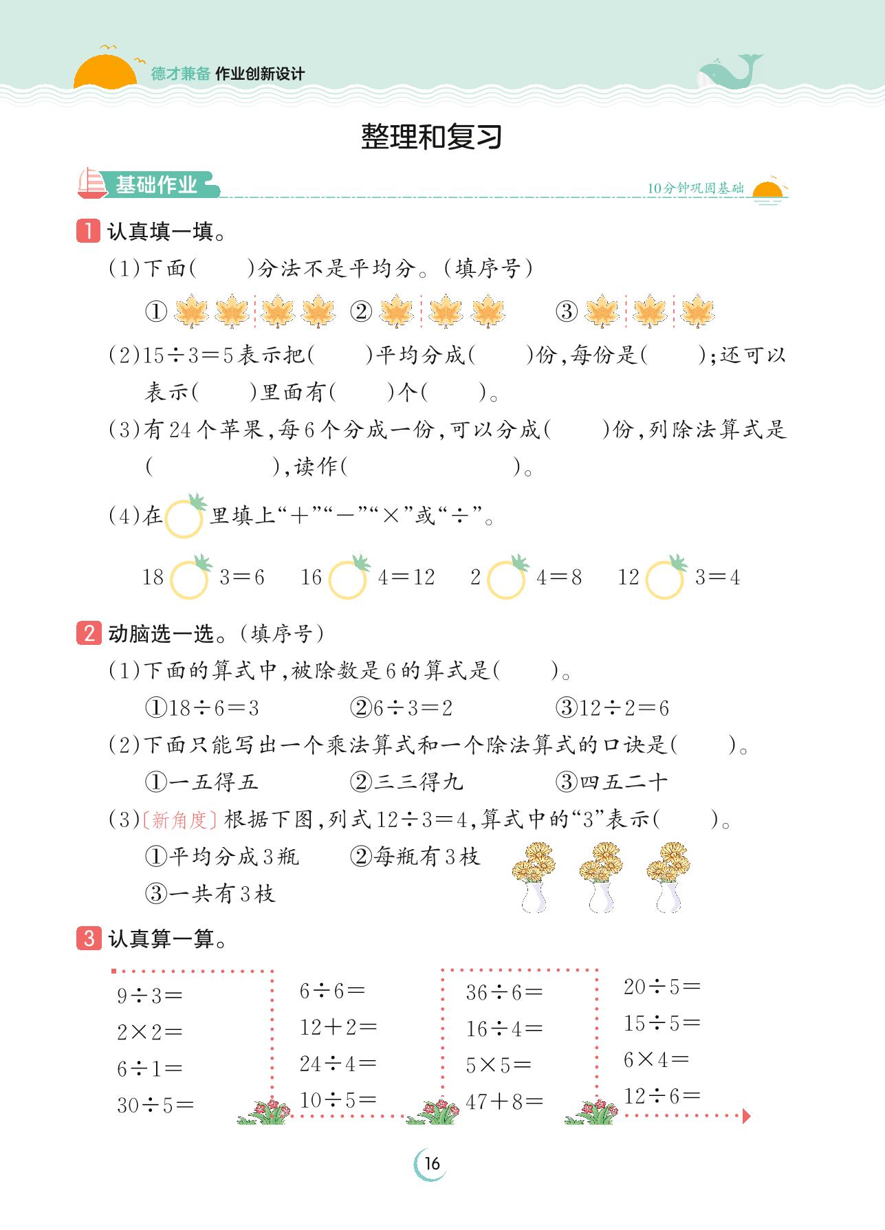 2023下册二年级数学人教版 第二单元 表内除法(一)——整理和复习