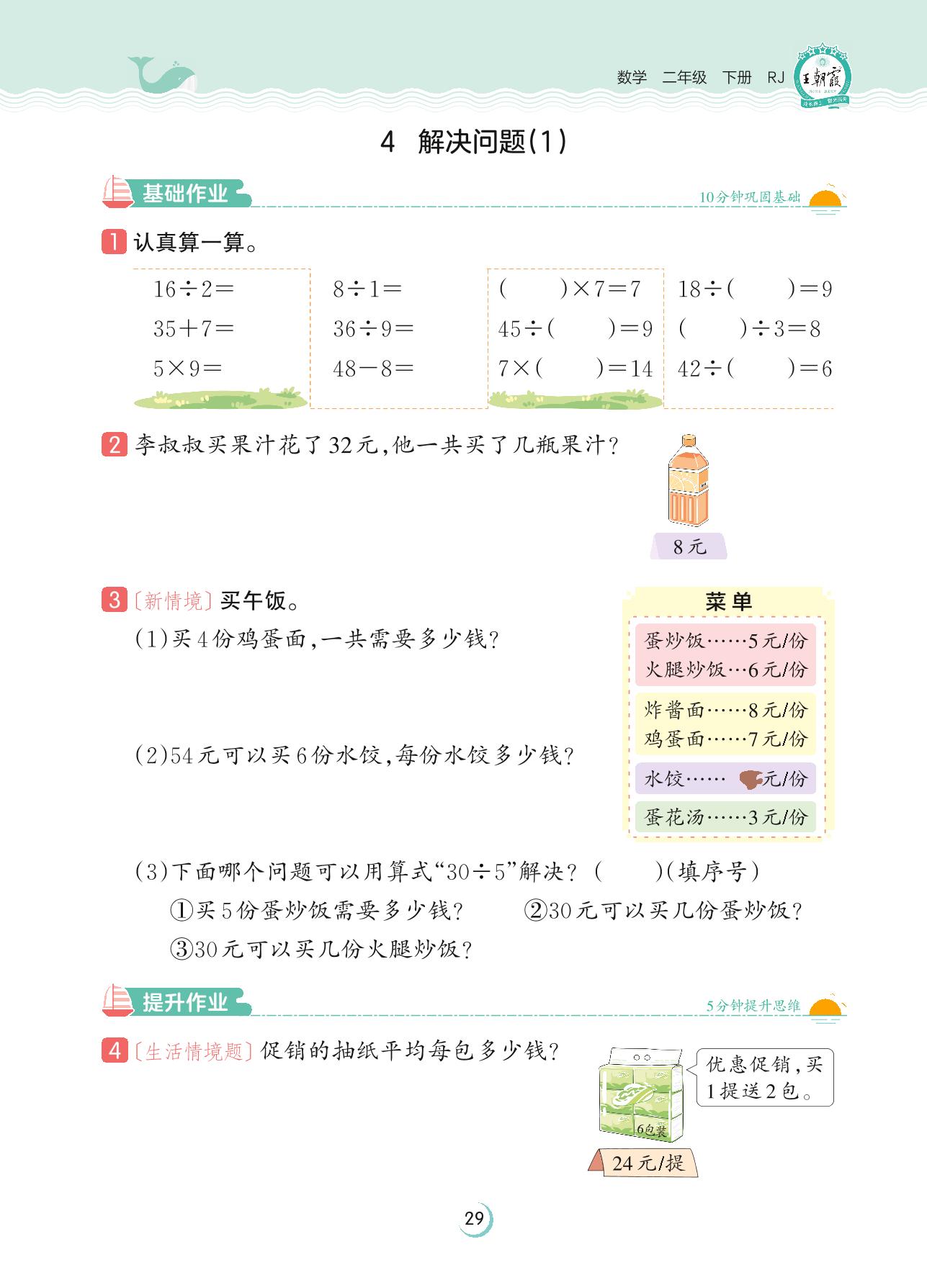 2023下册二年级数学人教版 第四单元 表内除法(二)——4 解决问题(1)