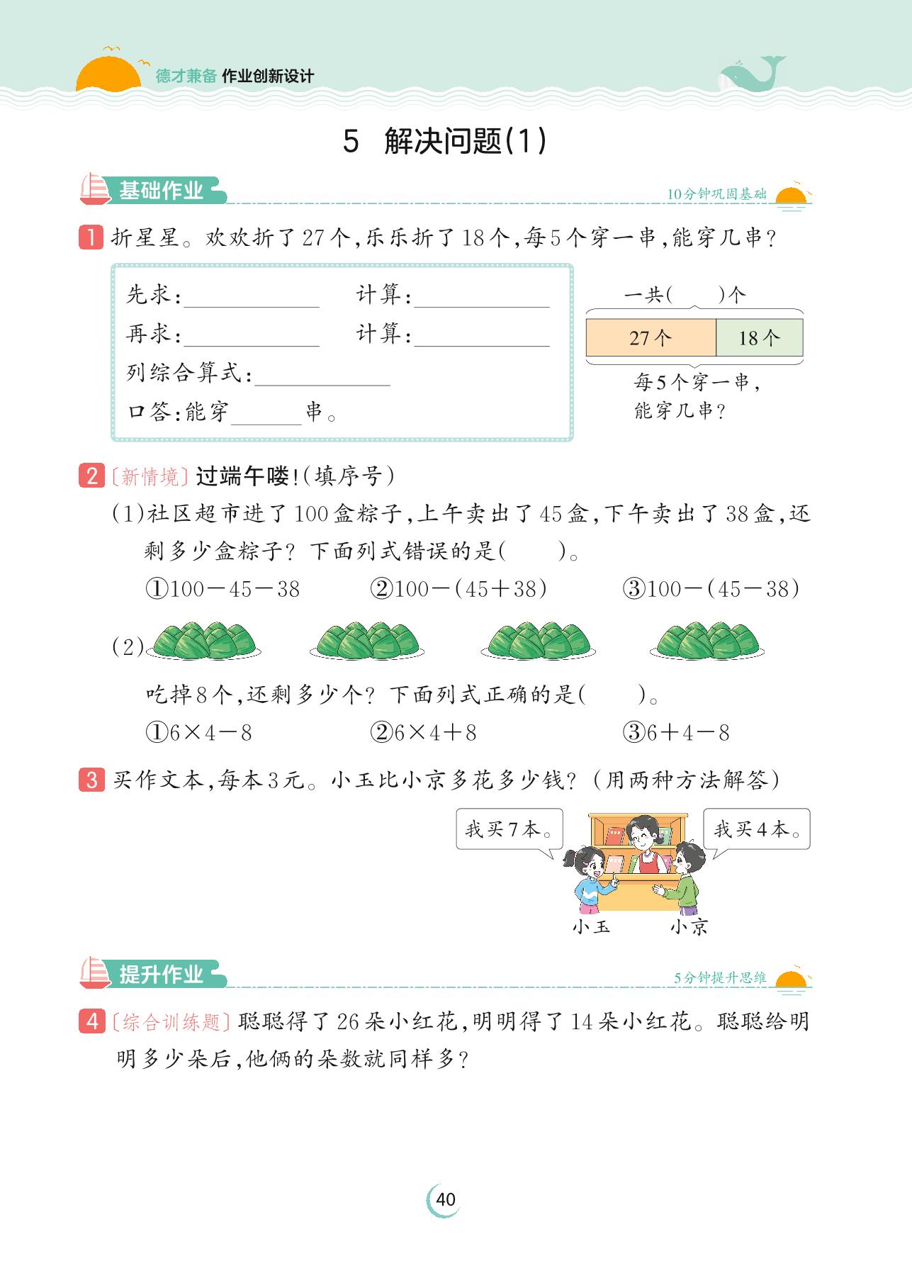 2023下册二年级数学人教版 第五单元 混合运算——5 解决问题(1)