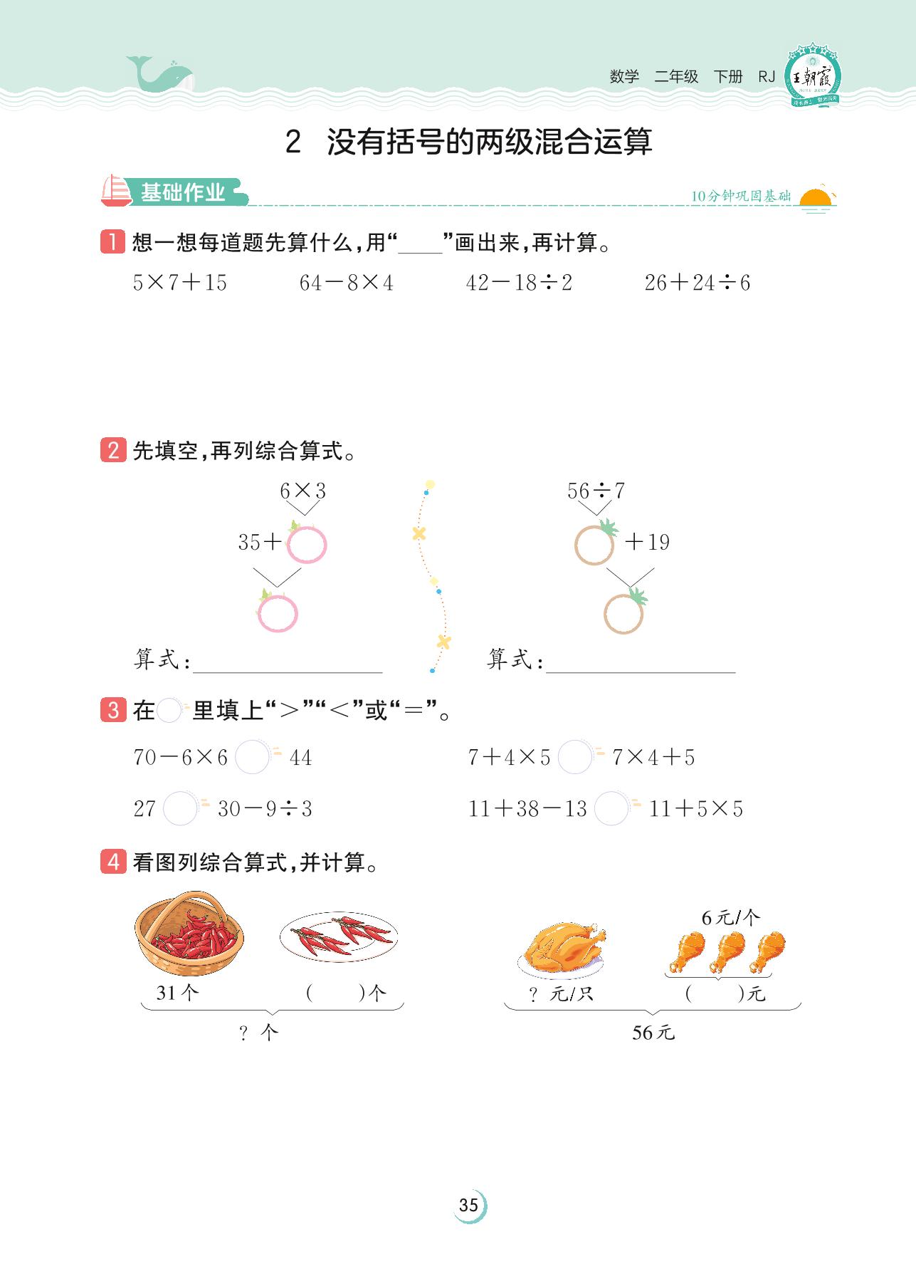 2023下册二年级数学人教版 第五单元 混合运算——2 没有括号的两级混合运算