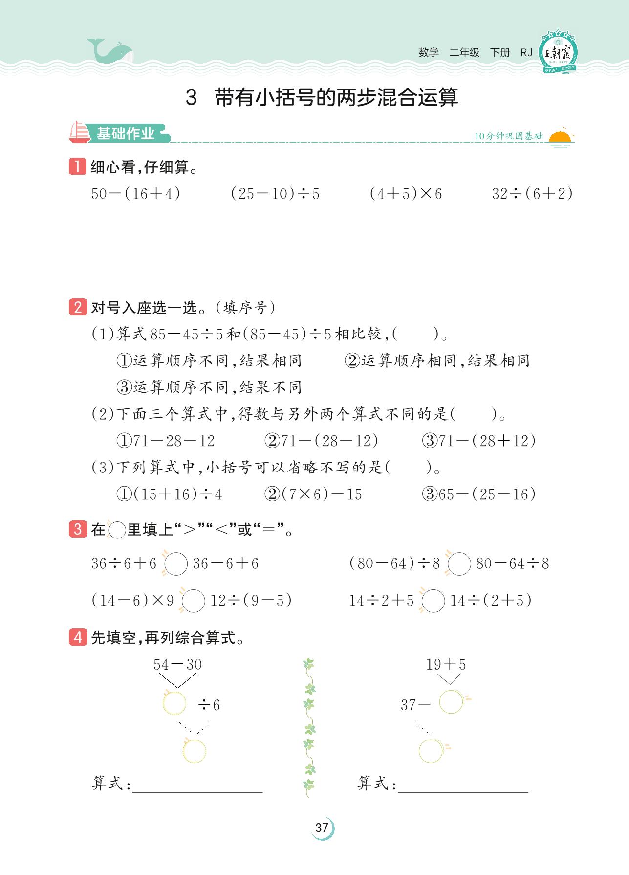 2023下册二年级数学人教版 第五单元 混合运算——3 带有小括号的两步混合运算