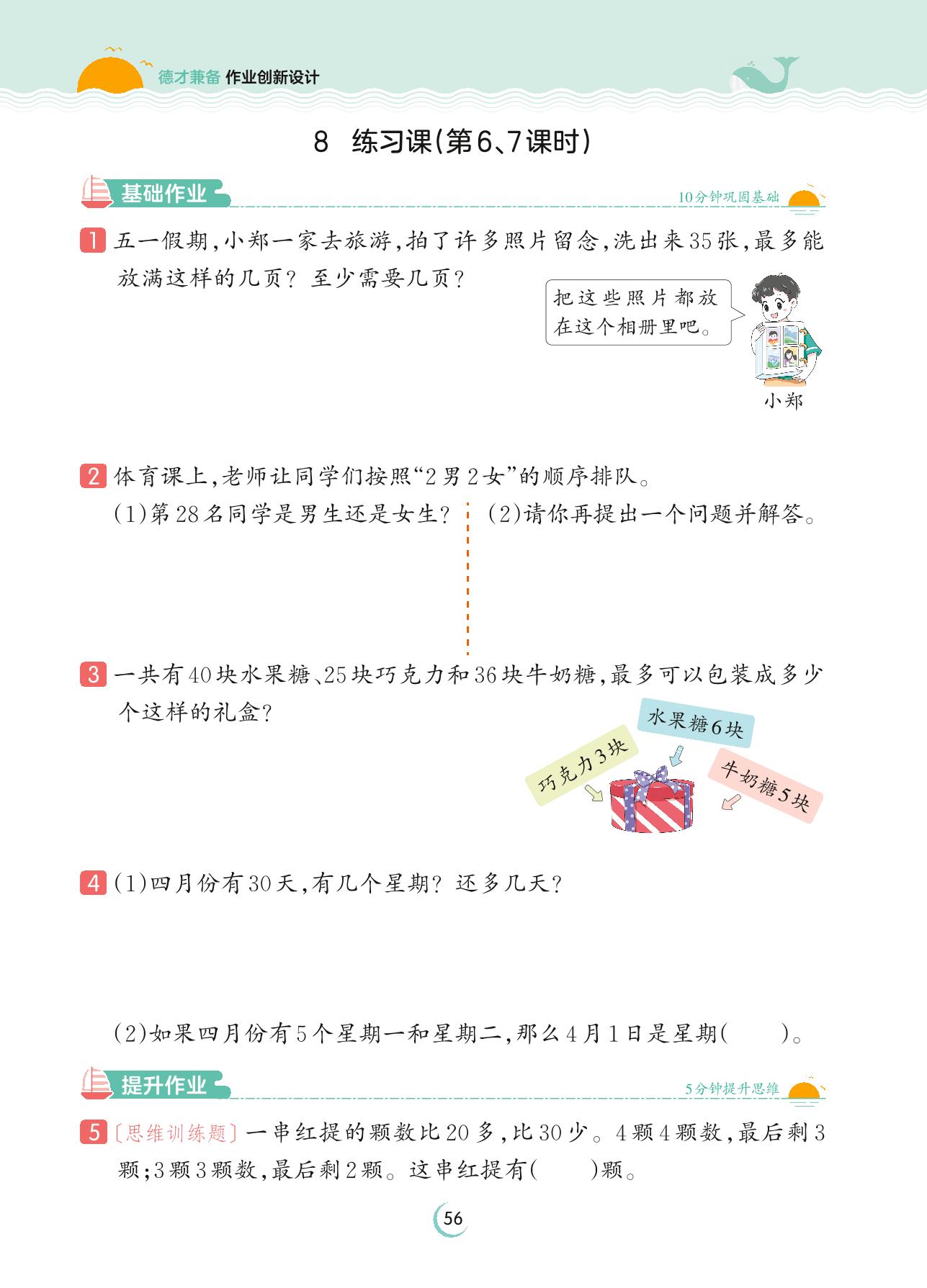 2023下册二年级数学人教版 第六单元 有余数的除法——8 练习课(第6、7课时)