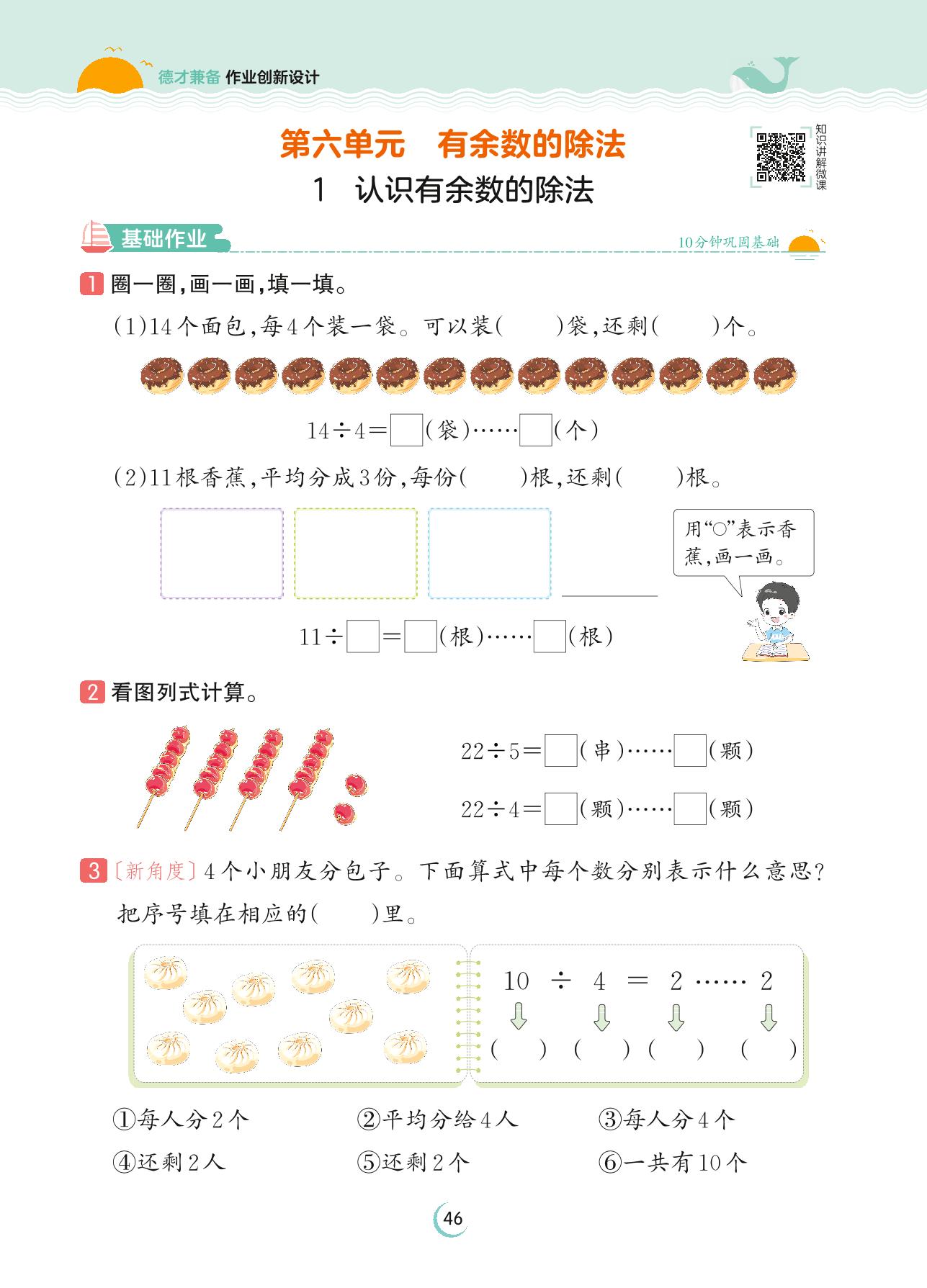2023下册二年级数学人教版 第六单元 有余数的除法——1 认识有余数的除法