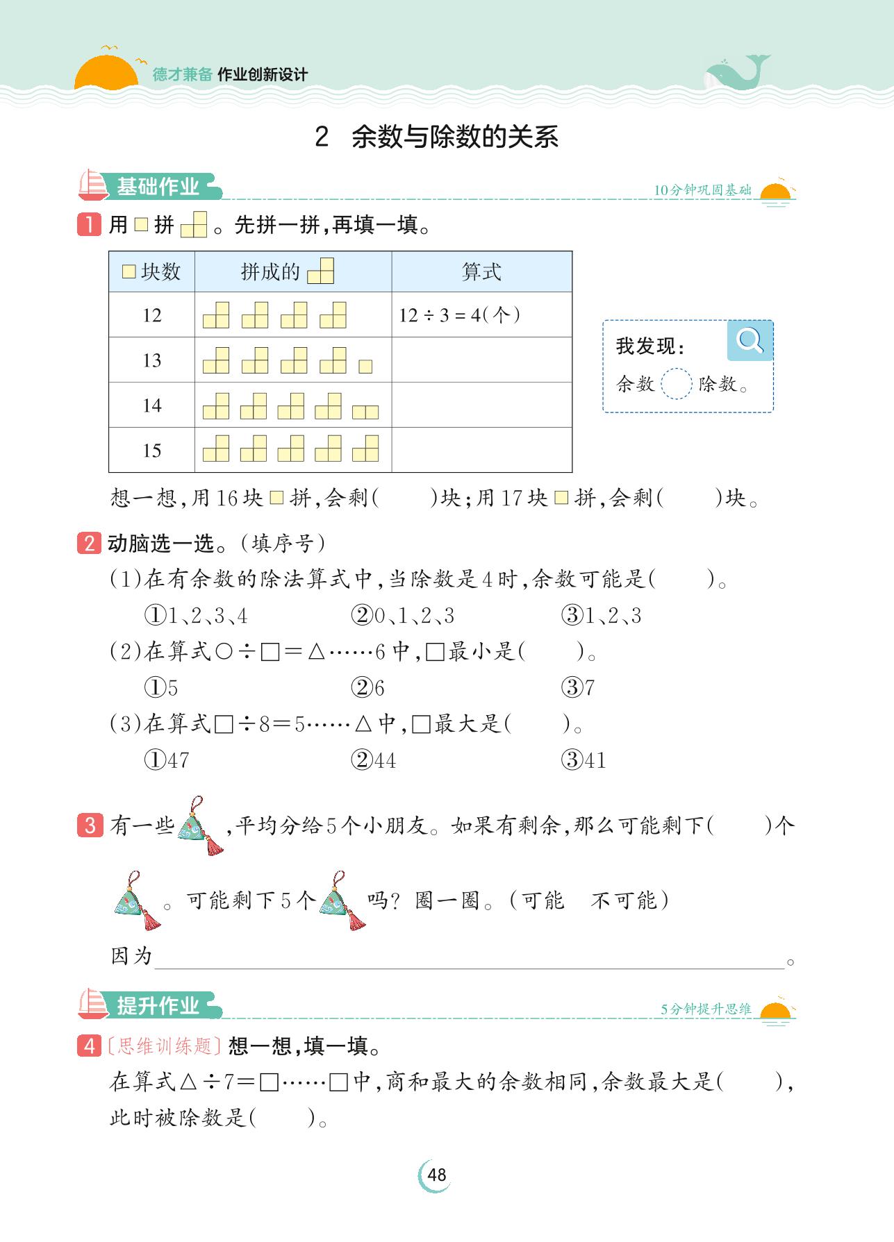 2023下册二年级数学人教版 第六单元 有余数的除法——2 余数与除数的关系