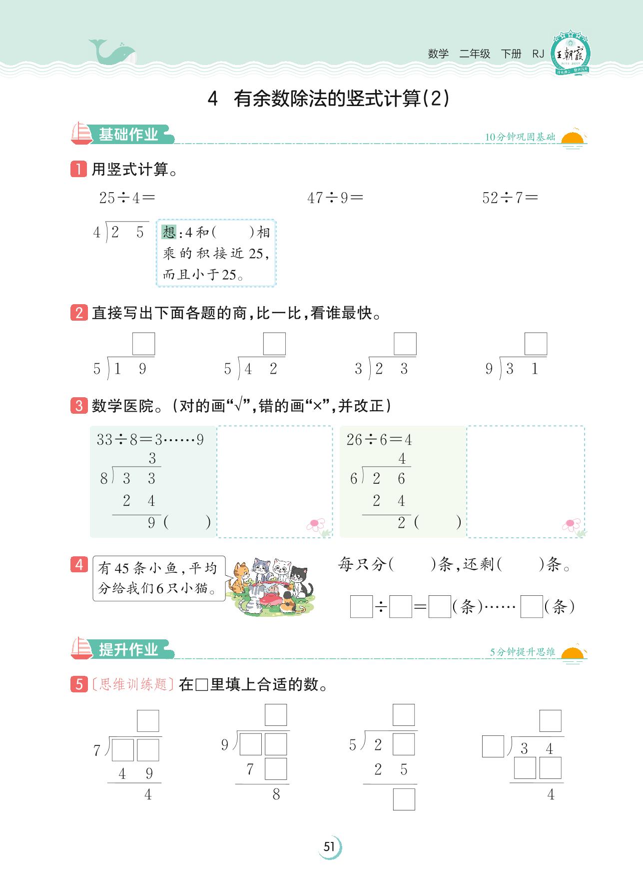2023下册二年级数学人教版 第六单元 有余数的除法——4 有余数除法的竖式计算(2)