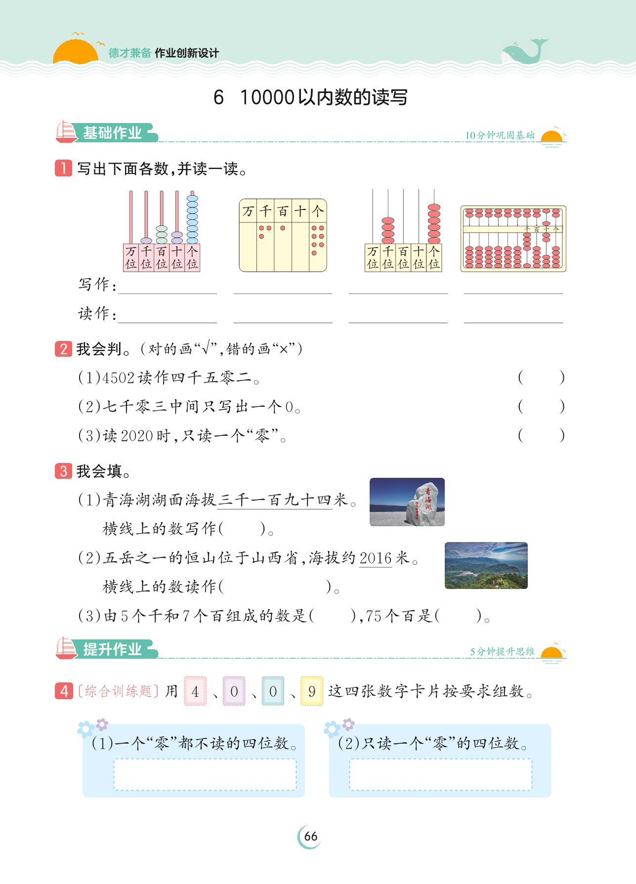 2023下册二年级数学人教版 第七单元 万以内数的认识——6 10000以内数的读写