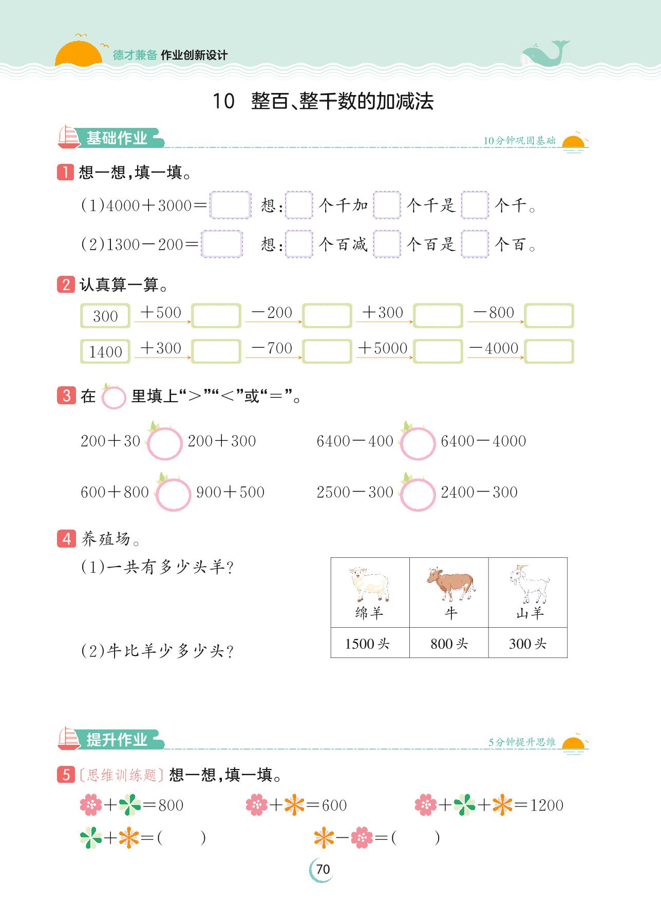 2023下册二年级数学人教版 第七单元 万以内数的认识——10 整百、整千数的加减法
