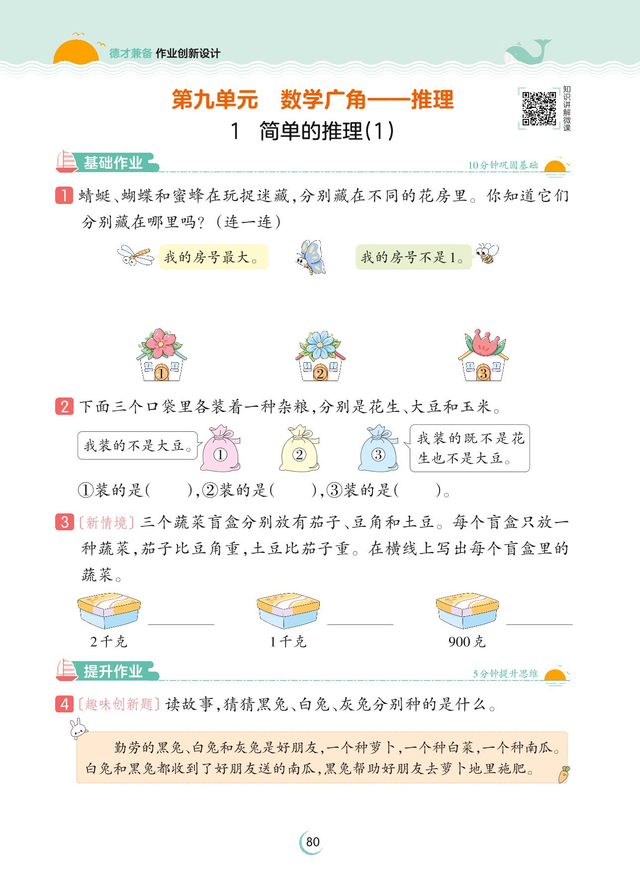 2023下册二年级数学人教版 第九单元 数学广角 推理——1 简单的推理(1)