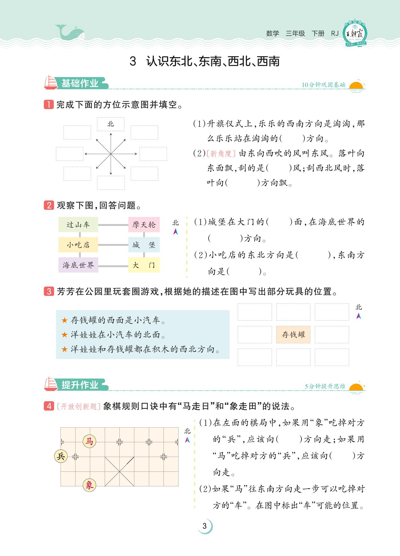2023下册三年级数学人教版 第一单元 位置与方向(一)——3 认识东北、东南、西北、西南