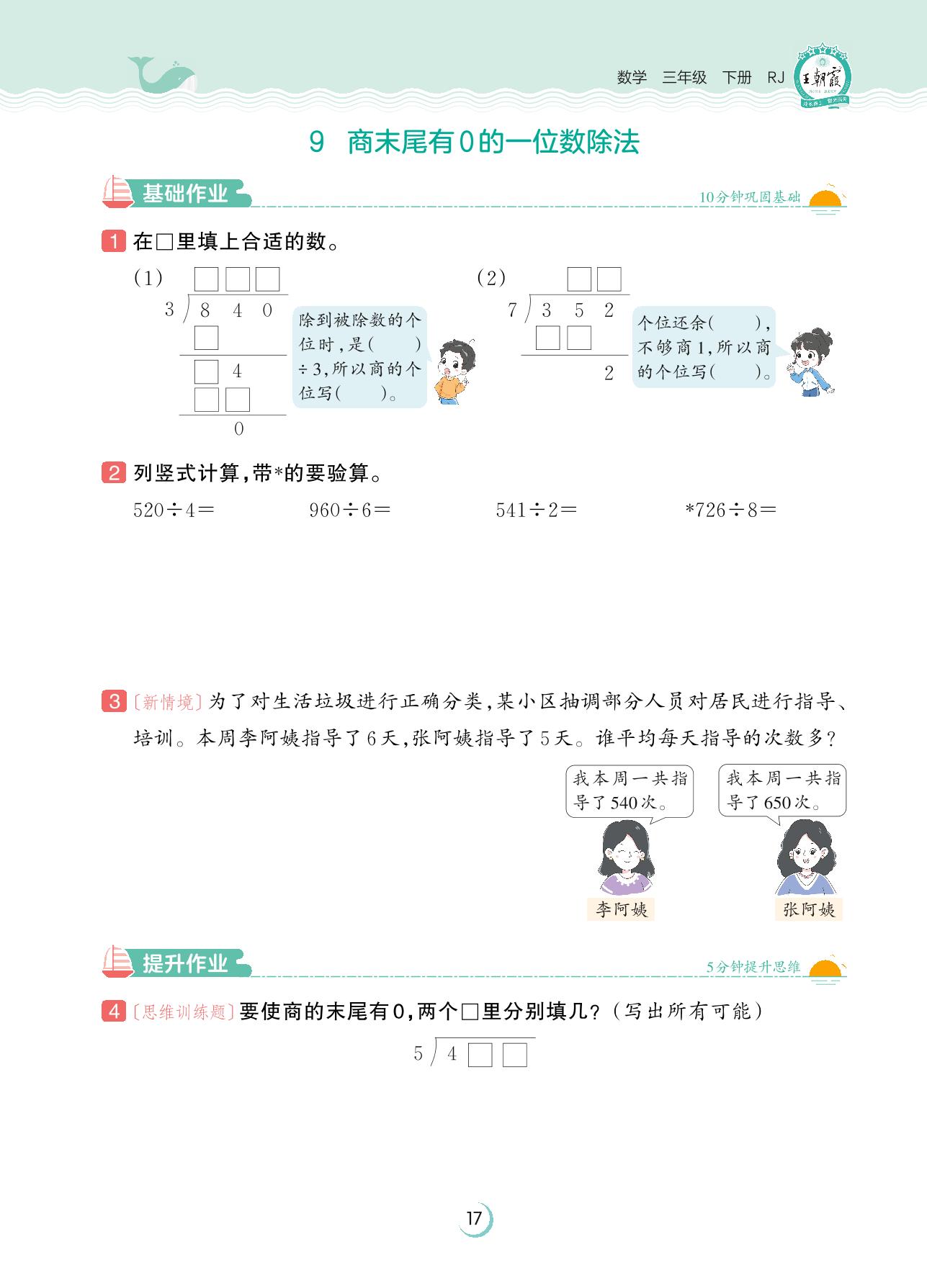 2023下册三年级数学人教版 第二单元 除数是一位数的除法——9 商末尾有0的一位数除法