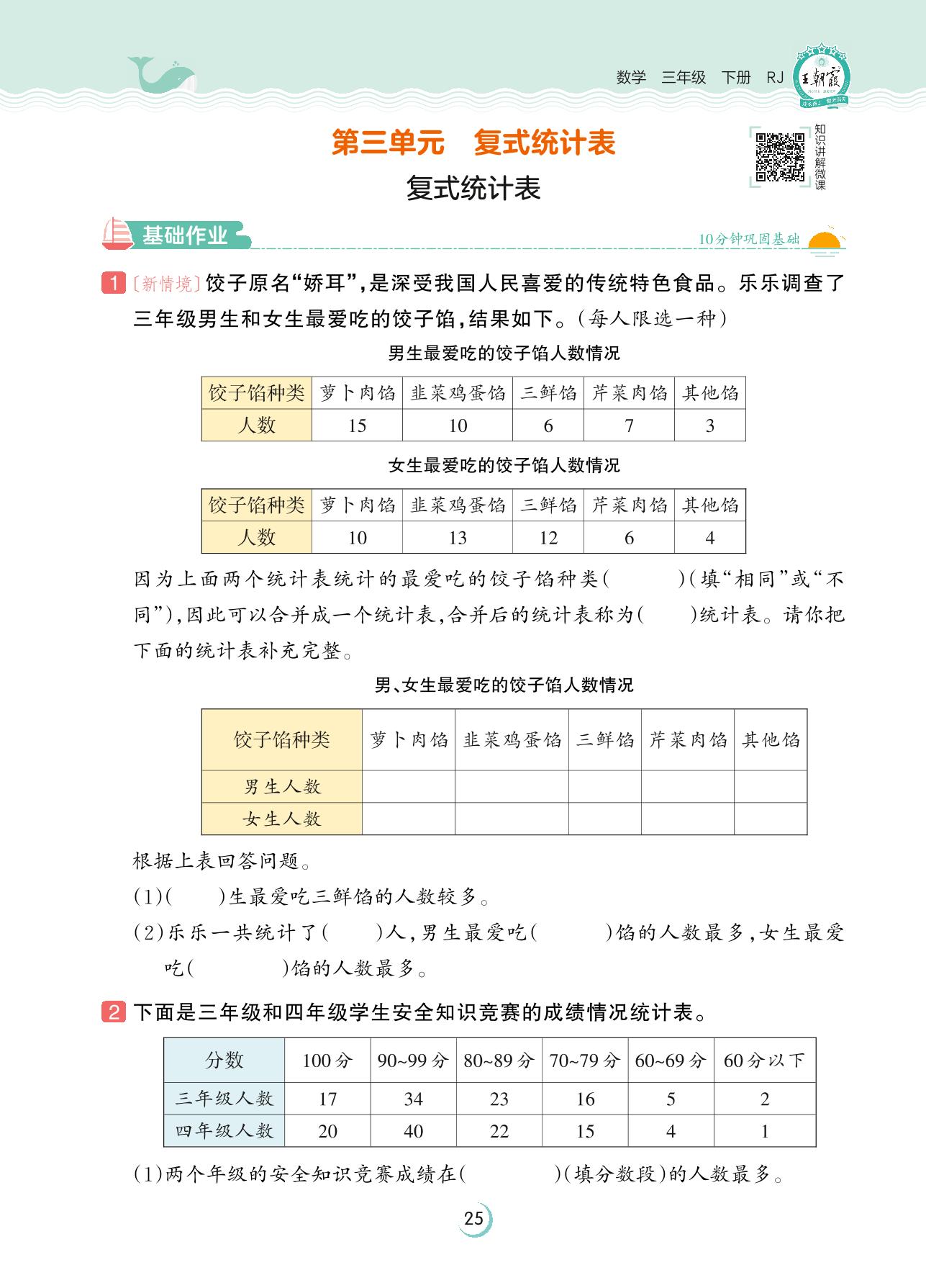 2023下册三年级数学人教版 第三单元 复式统计表——复式统计表