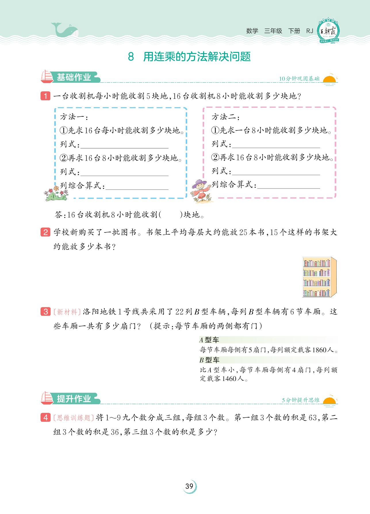 2023下册三年级数学人教版 第四单元 两位数乘两位数——8 用连乘的方法解决问题