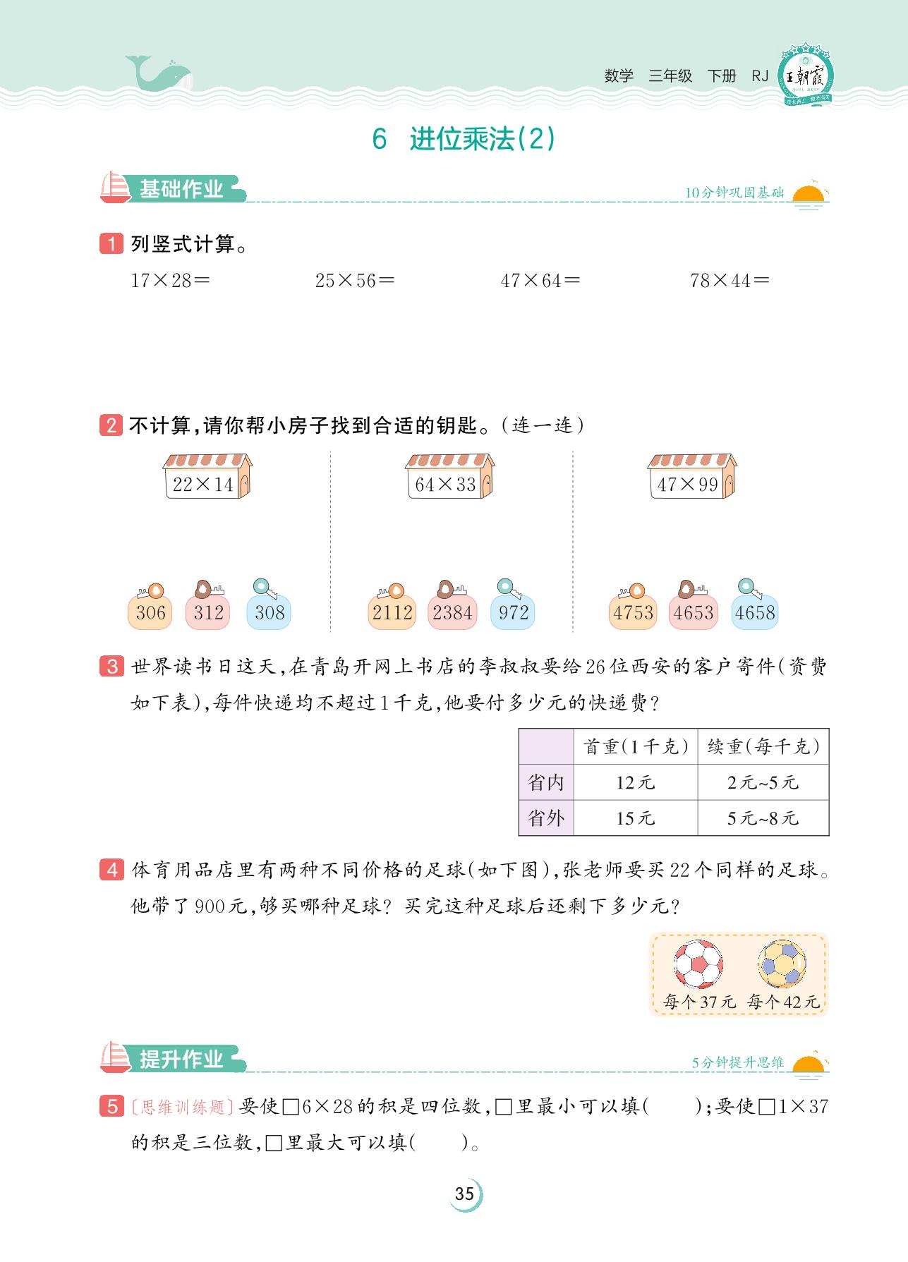 2023下册三年级数学人教版 第四单元 两位数乘两位数——6 进位乘法(2)