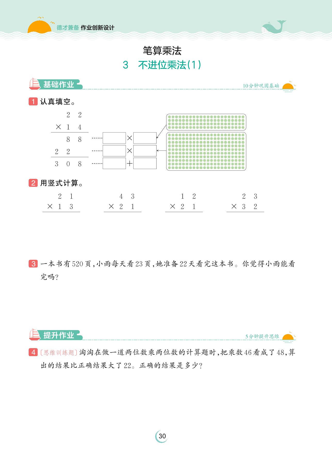 2023下册三年级数学人教版 第四单元 两位数乘两位数——3 不进位乘法(1)