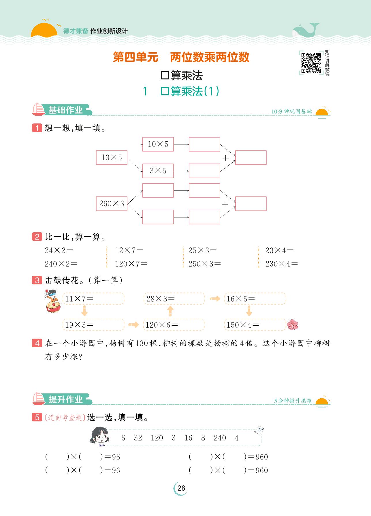2023下册三年级数学人教版 第四单元 两位数乘两位数——1 口算乘法(1)