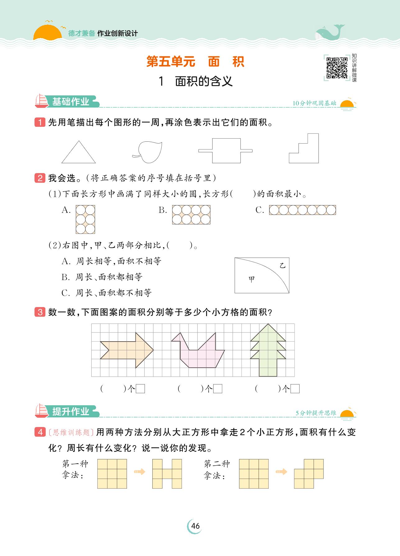 2023下册三年级数学人教版 第五单元 面积——1 面积的含义