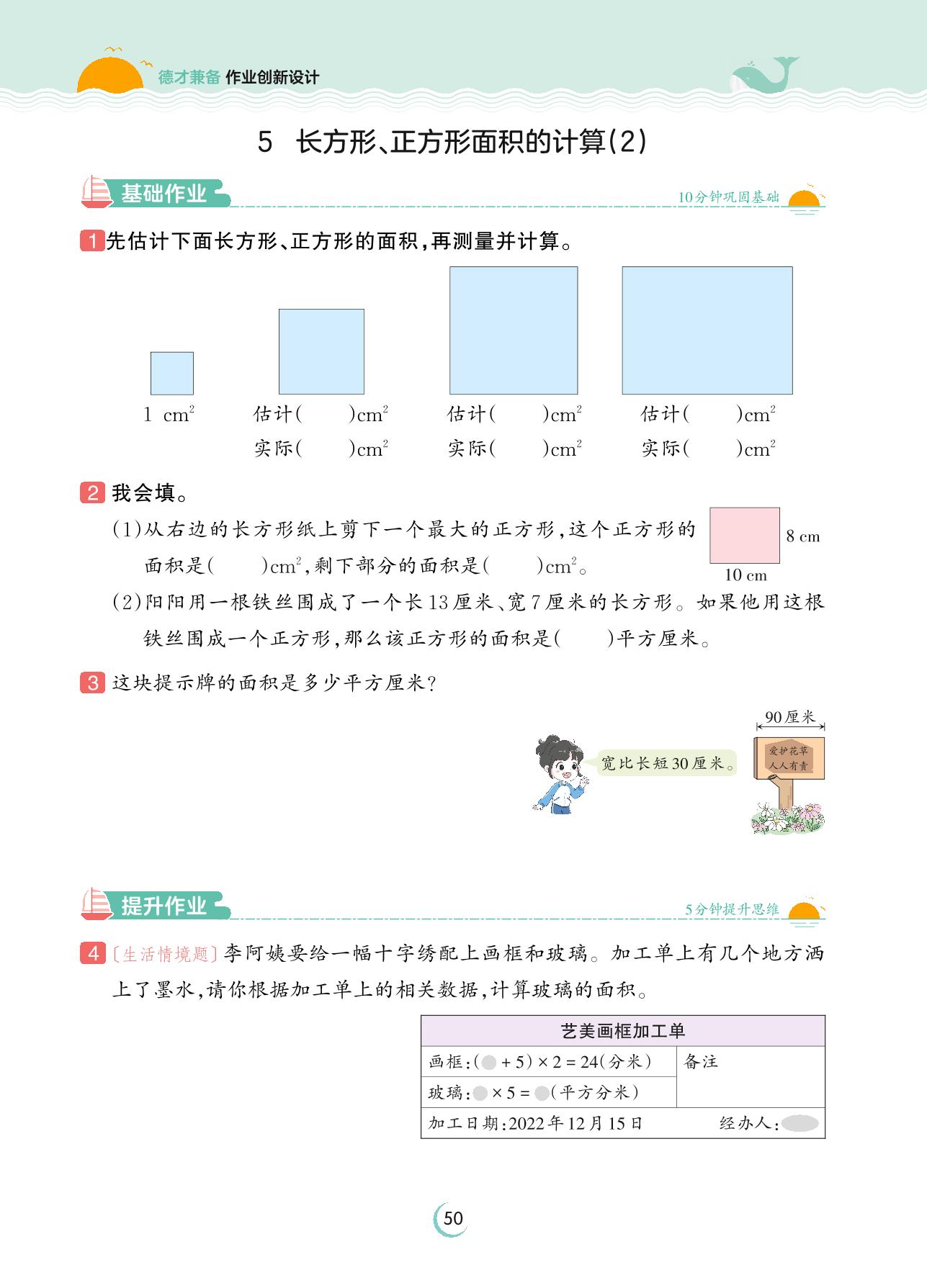 2023下册三年级数学人教版 第五单元 面积——5 长方形、正方形面积的计算(2)