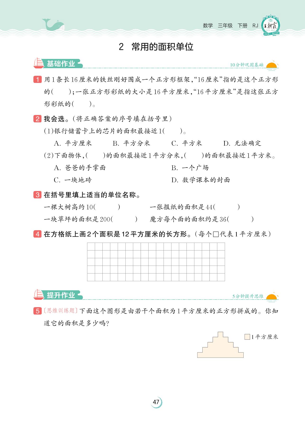 2023下册三年级数学人教版 第五单元 面积——2 常用的面积单位