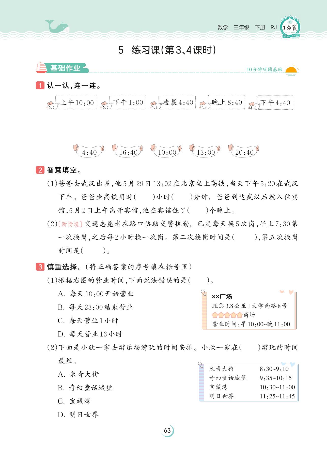 三年级数学人教版下册课时作业