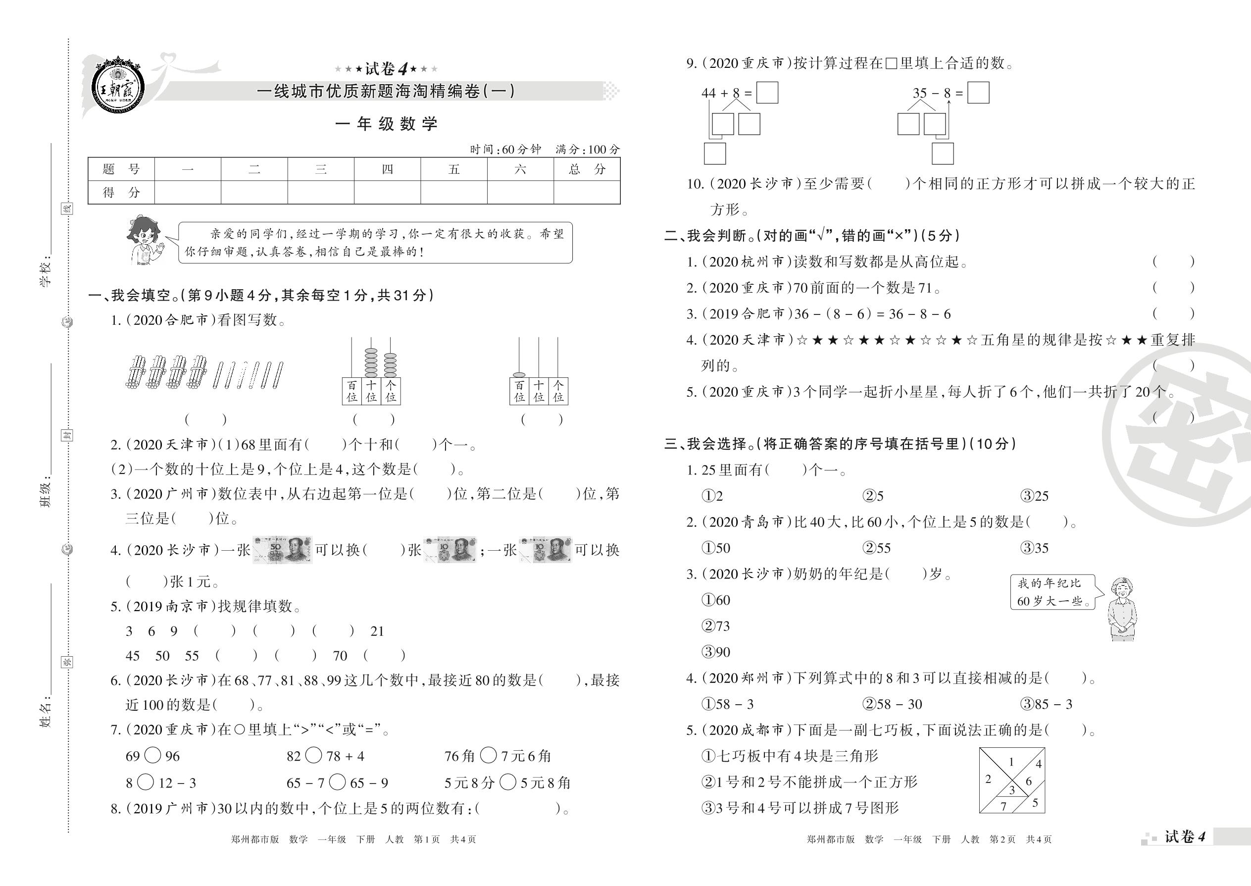 王朝霞海淘期末精编卷一年级下册数学(人教版)_R210802205218【4】