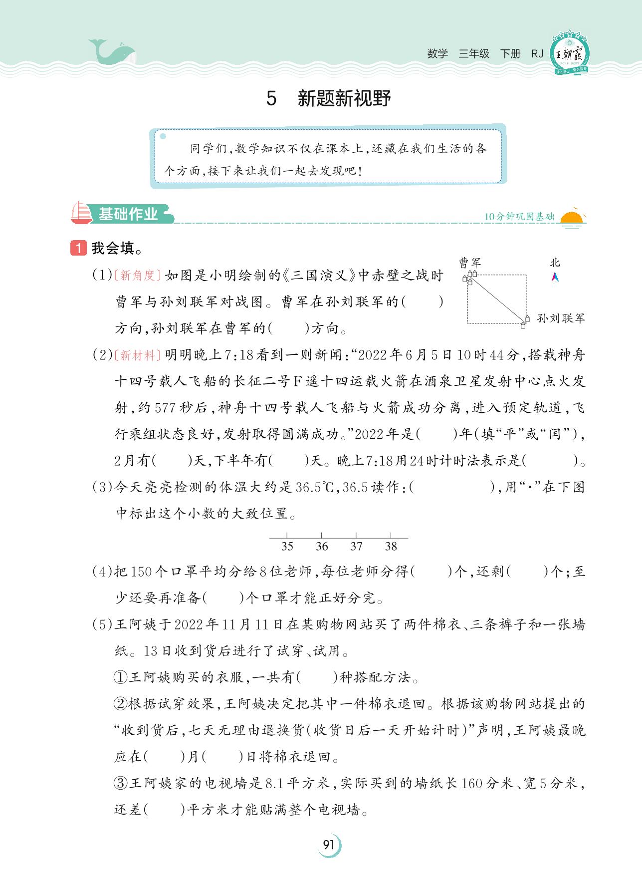 2023下册三年级数学人教版 第九单元 总复习——5 新题新视野
