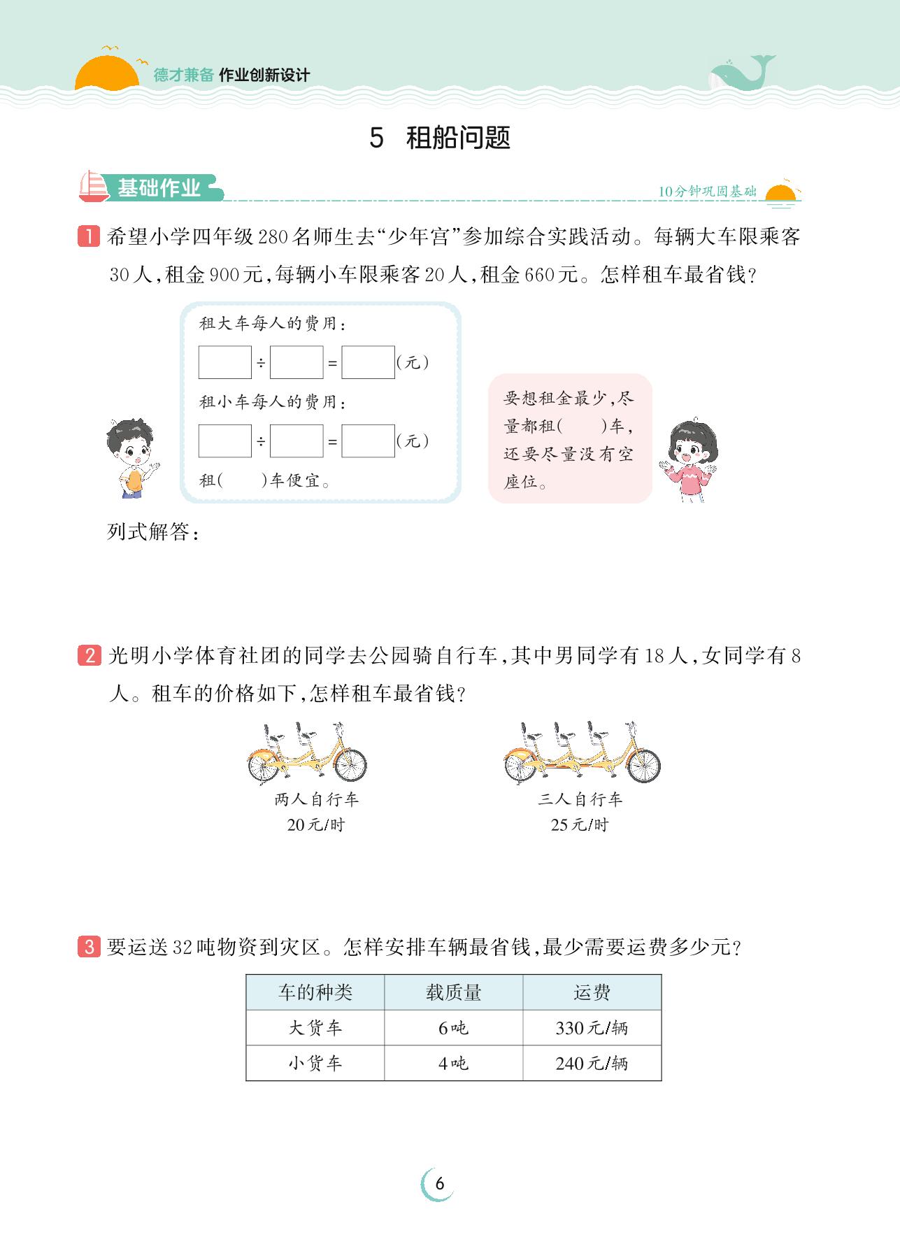 2023下册四年级数学人教版 第一单元 四则运算——5 租船问题