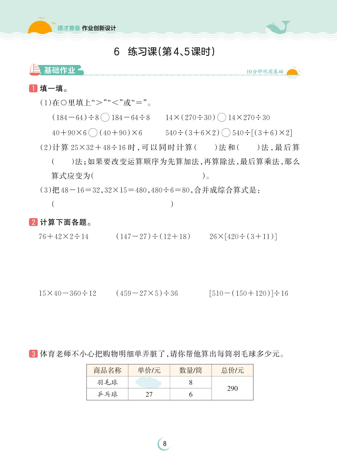 2023下册四年级数学人教版 第一单元 四则运算——6 练习课(第4、5课时)