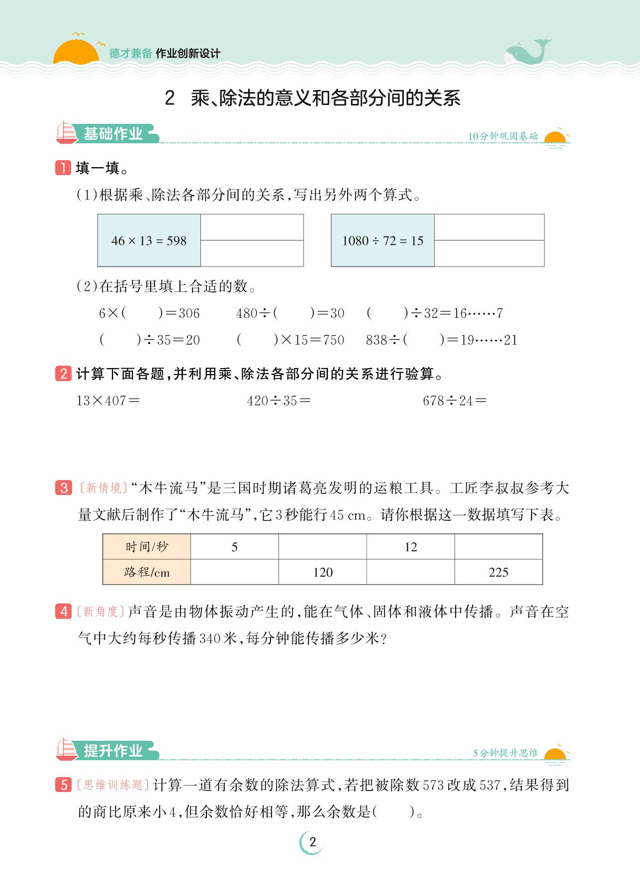 2023下册四年级数学人教版 第一单元 四则运算——2 乘、除法的意义和各部分间的关系