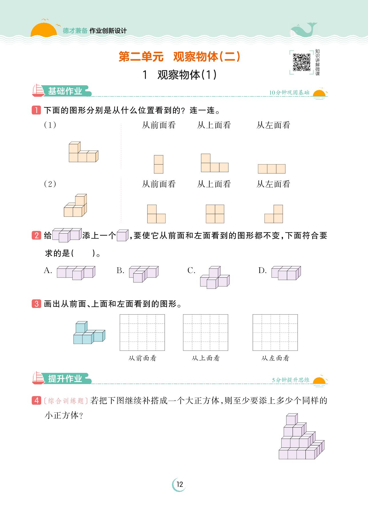 2023下册四年级数学人教版 第二单元 观察物体(二)——1 观察物体(1)