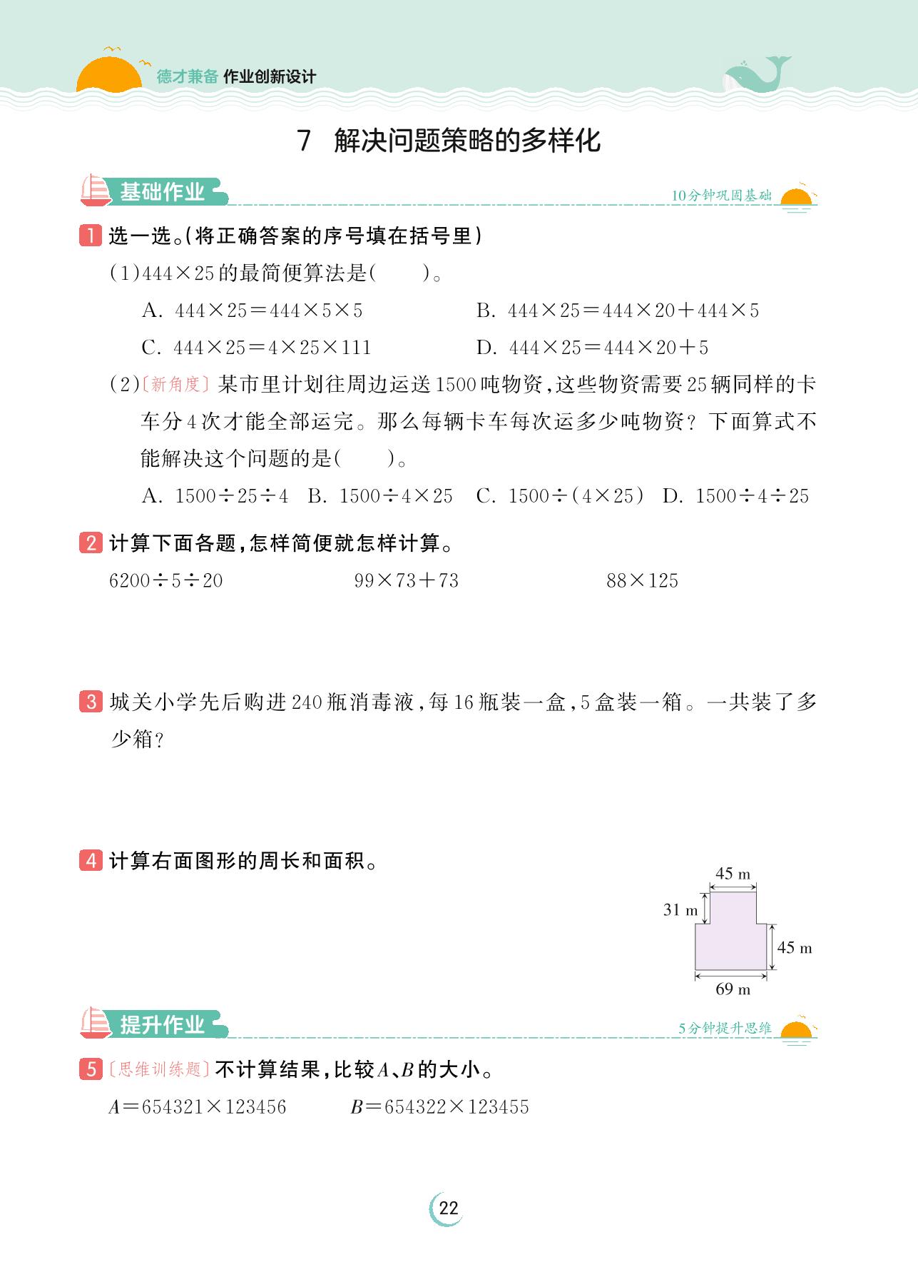 2023下册四年级数学人教版 第三单元 运算律——7 解决问题策略的多样化