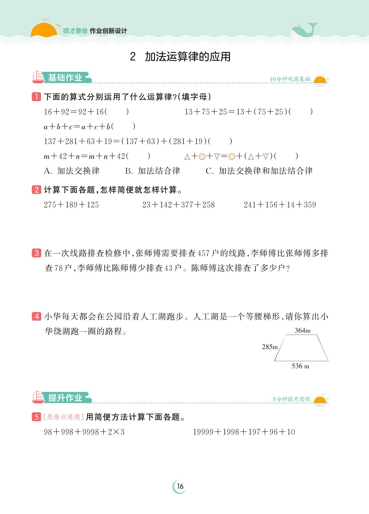 2023下册四年级数学人教版 第三单元 运算律——2 加法运算律的应用