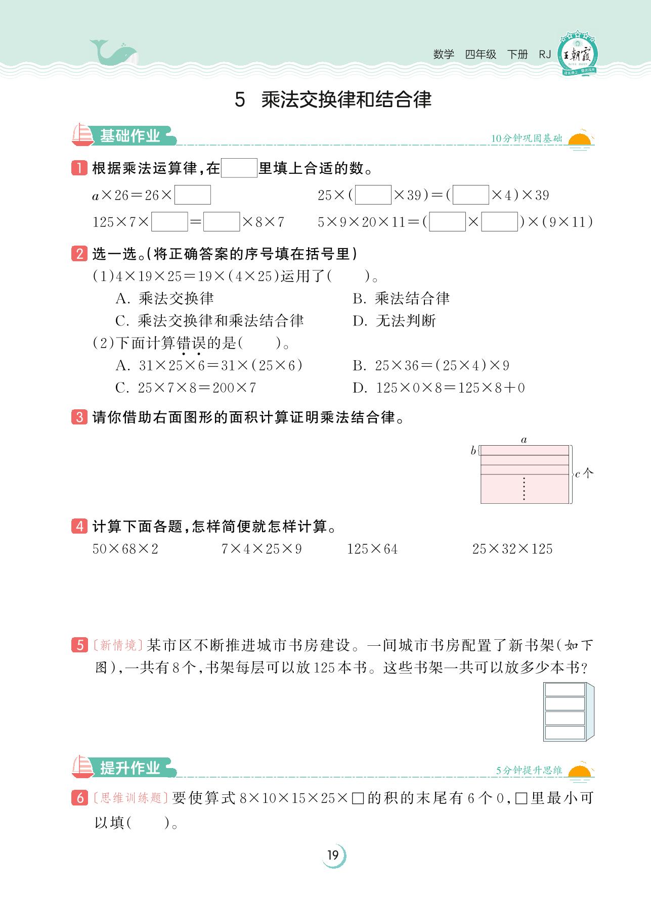 2023下册四年级数学人教版 第三单元 运算律——5 乘法交换律和结合律