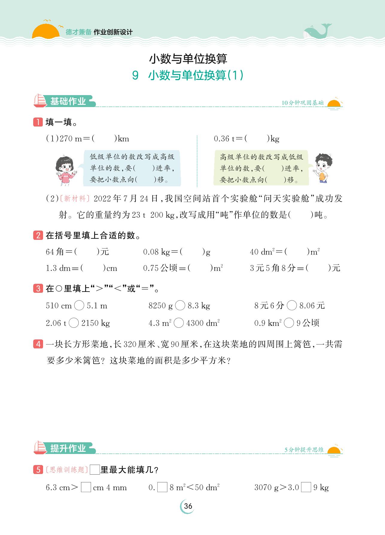 2023下册四年级数学人教版 第四单元 小数的意义和性质——9 小数与单位换算(1)