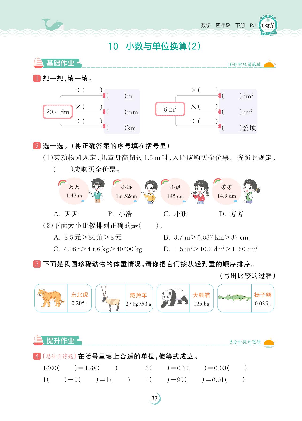 2023下册四年级数学人教版 第四单元 小数的意义和性质——10 小数与单位换算(2)