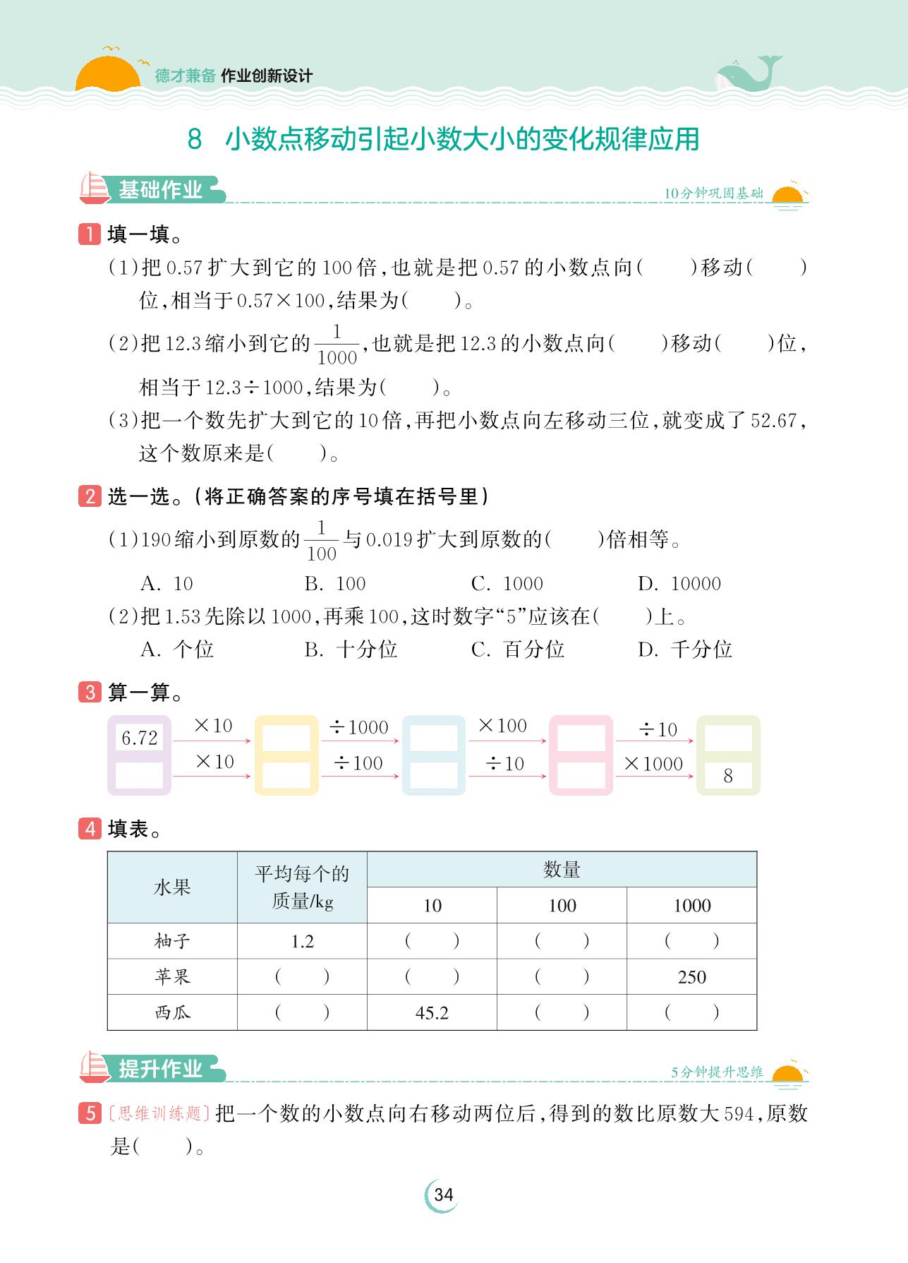 2023下册四年级数学人教版 第四单元 小数的意义和性质——8 小数点移动引起小数大小的变化规律应用