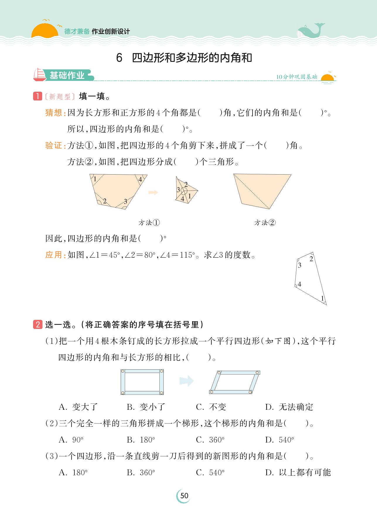 2023下册四年级数学人教版 第五单元 三角形——6 四边形和多边形的内角和