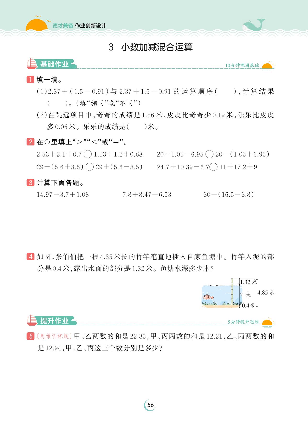 2023下册四年级数学人教版 第六单元 小数的加法和减法——3 小数加减混合运算