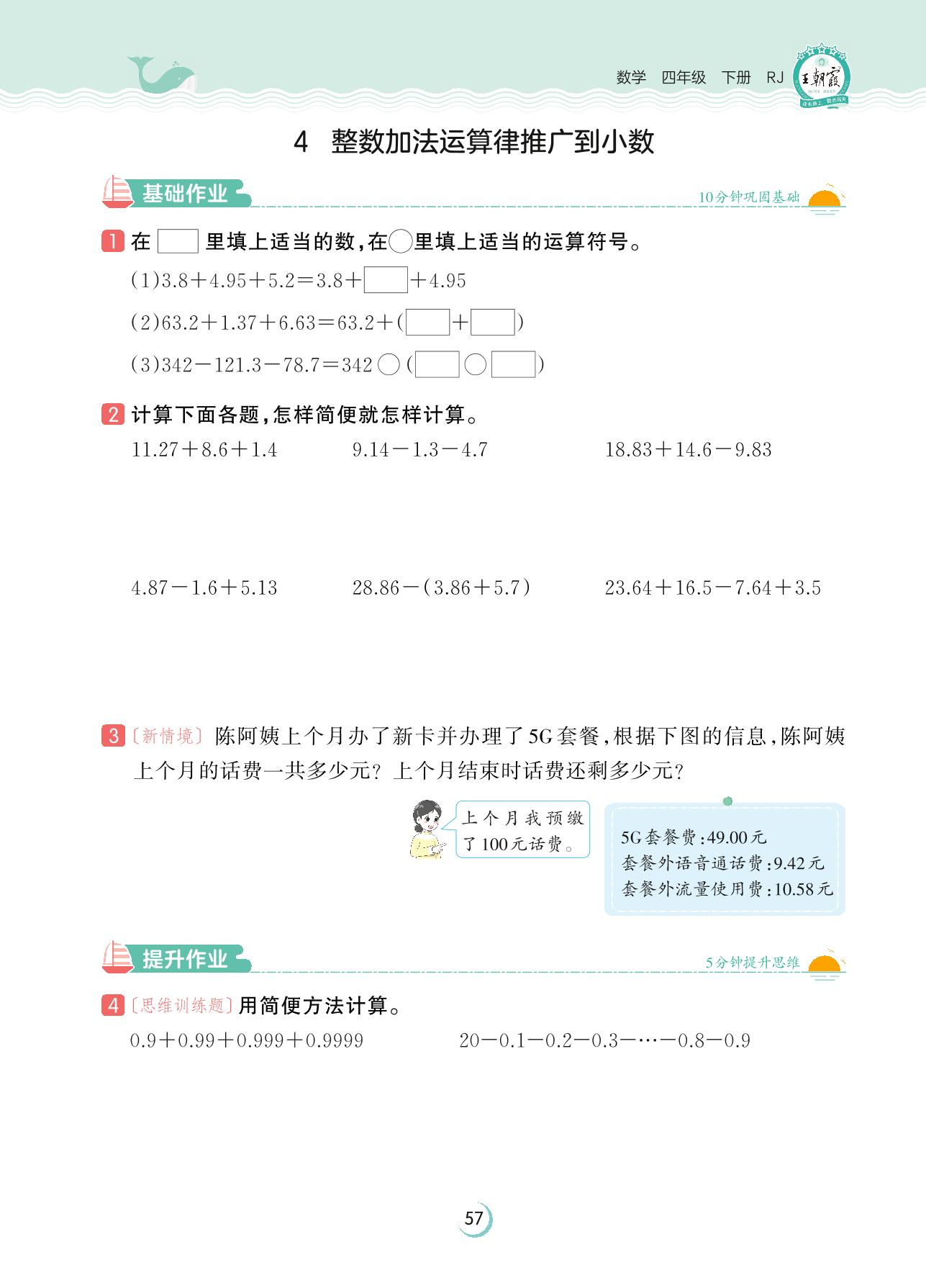 2023下册四年级数学人教版 第六单元 小数的加法和减法——4 整数加法运算律推广到小数