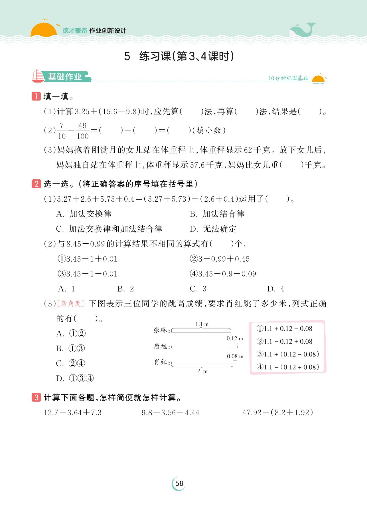 2023下册四年级数学人教版 第六单元 小数的加法和减法——5 练习课(第3、4课时)