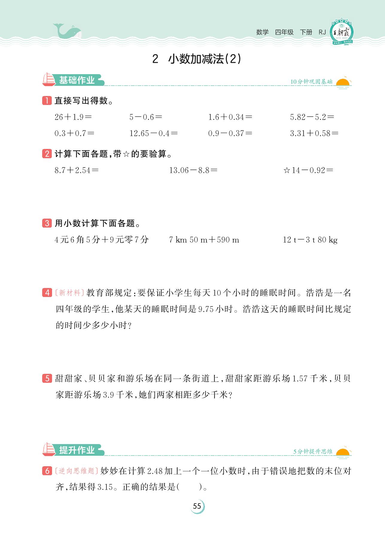 2023下册四年级数学人教版 第六单元 小数的加法和减法——2 小数加减法(2)