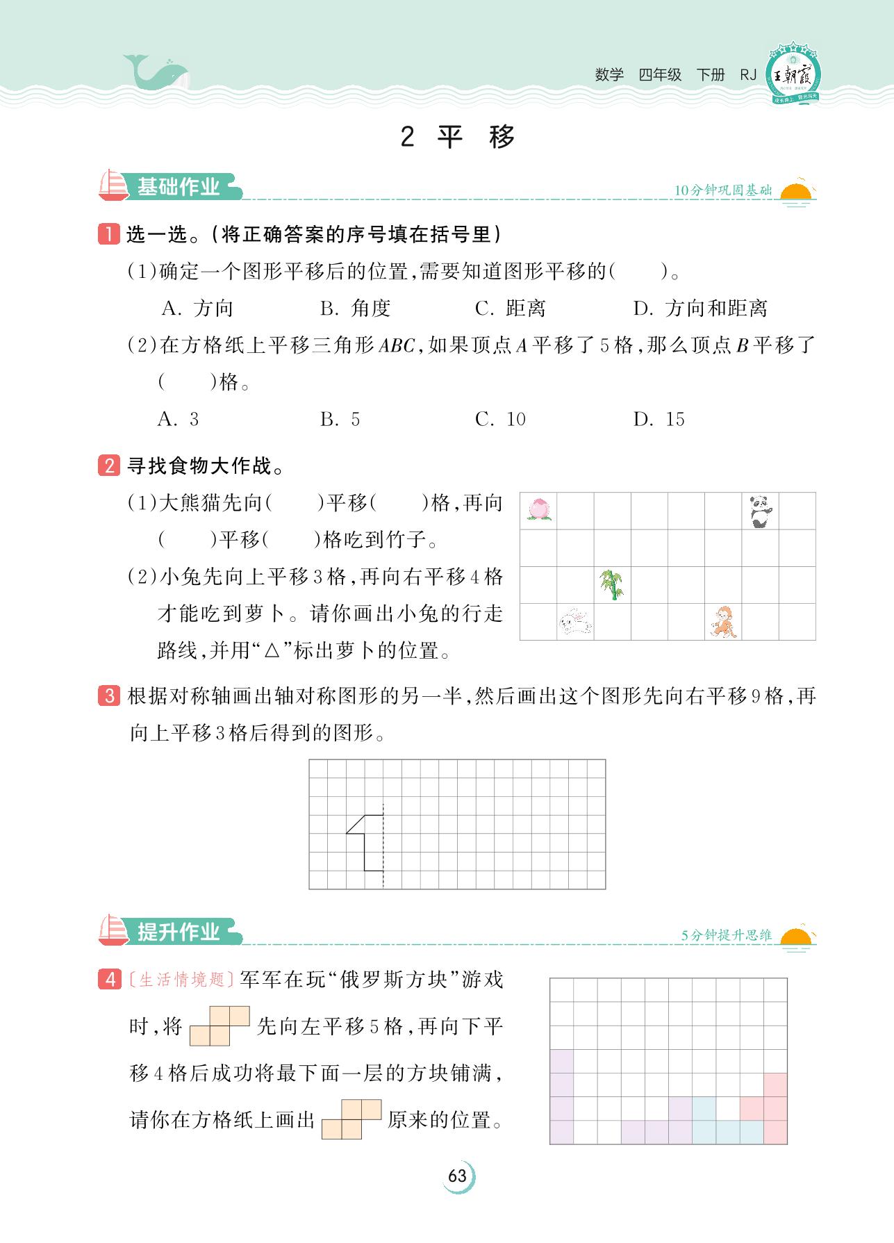 2023下册四年级数学人教版 第七单元 图形的运动(二)——2 平移