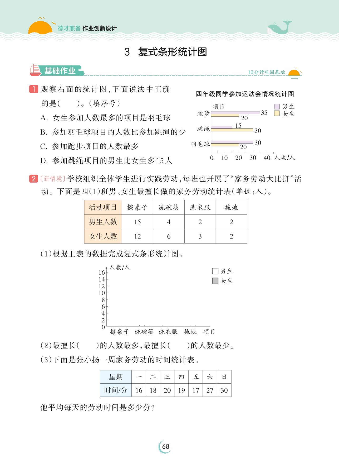 2023下册四年级数学人教版 第八单元 平均数与条形统计图——3 复式条形统计图