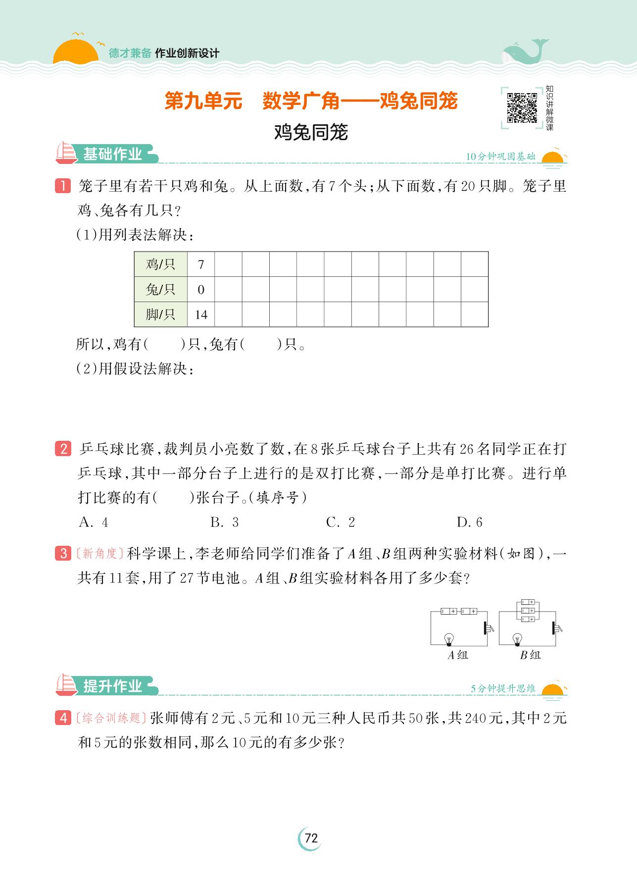 2023下册四年级数学人教版 第九单元 数学广角 鸡兔同笼——鸡兔同笼