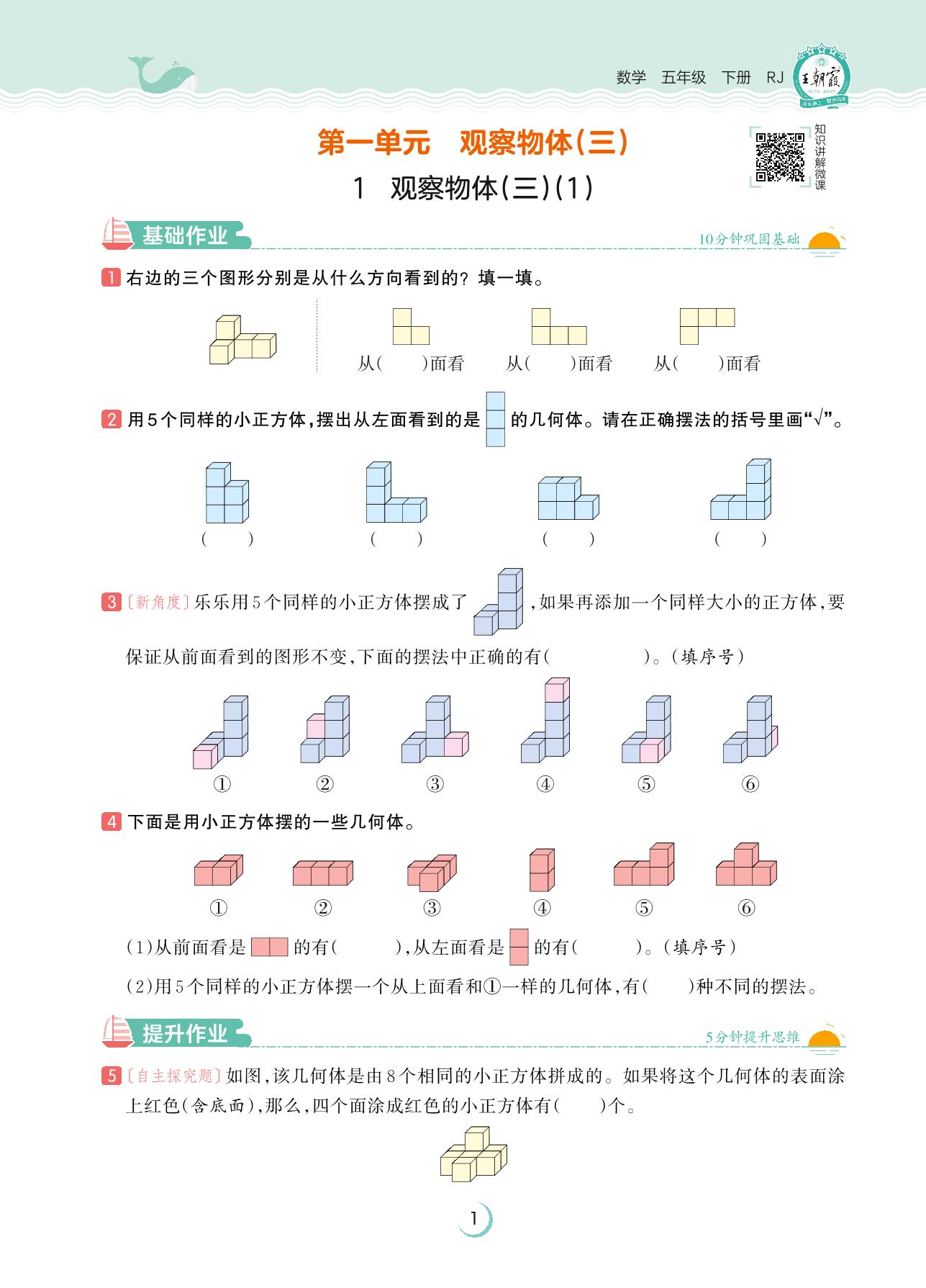 2023下册五年级数学人教版 第一单元 观察物体(三)——1 观察物体(三)(1)