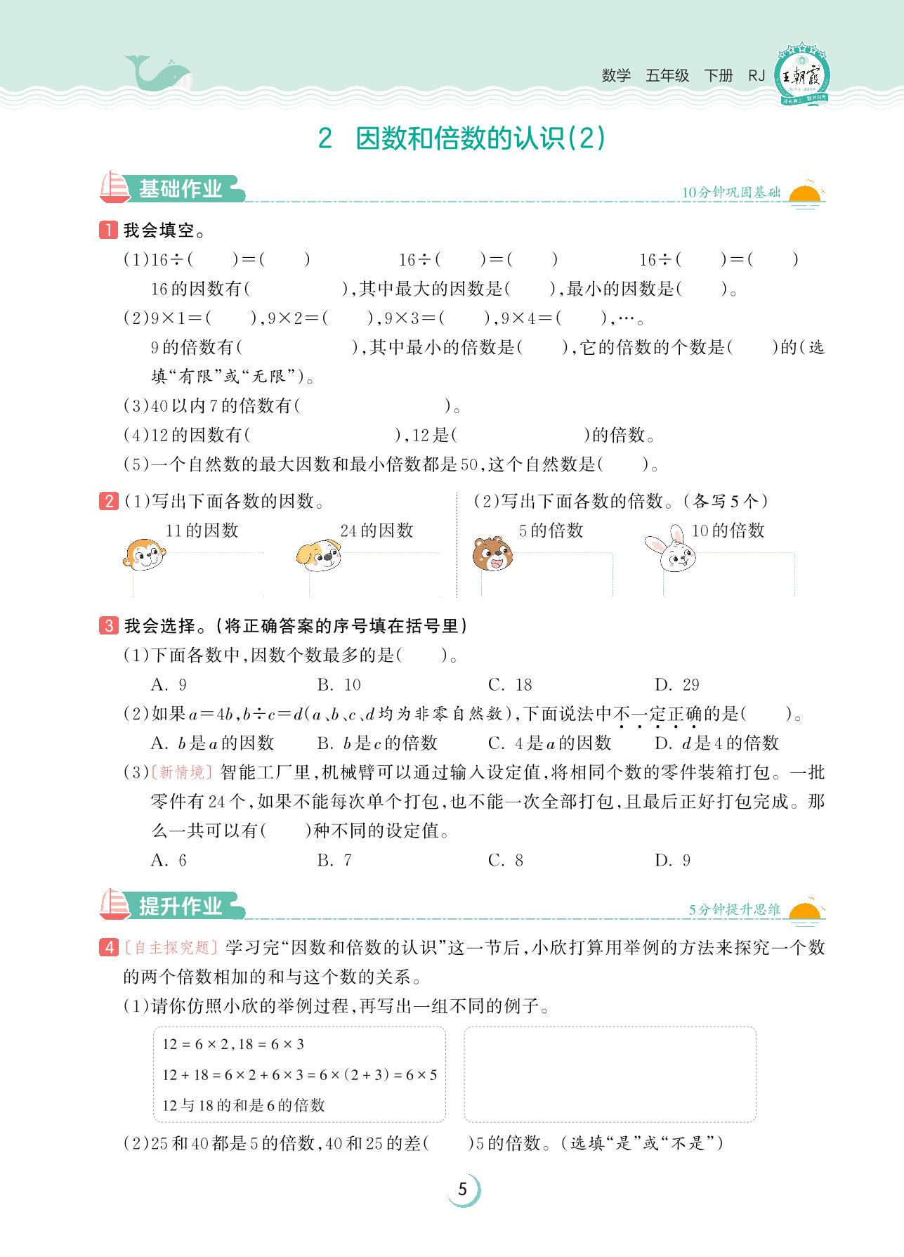 2023下册五年级数学人教版 第二单元 因数和倍数——2 因数和倍数的认识(2)