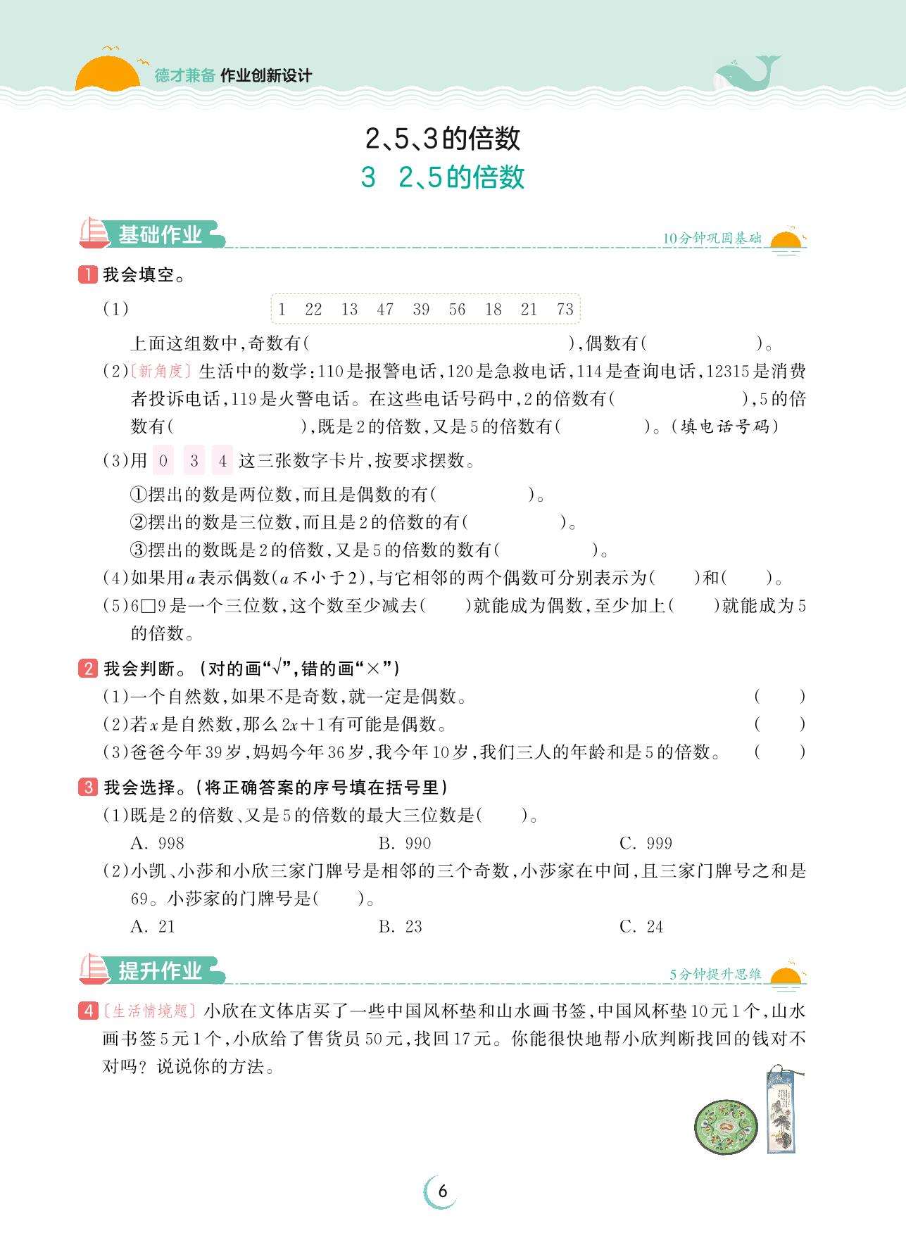 2023下册五年级数学人教版 第二单元 因数和倍数——3 2、5的倍数